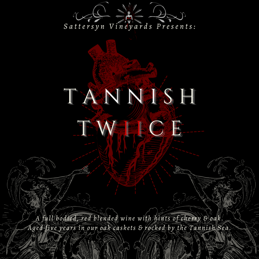 Wine bottle layout for a fictional red wine with a vampiric vibe blended with the use of roman numerals to add a elegant callback to the word ‘Twiice’.